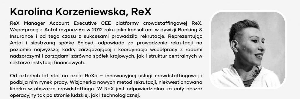 Zapytana o przyszłość crowdstaffingu w Polsce Karolina Korzeniewska nie przewiduje innej możliwości niż sukces. Podkreśliła, że jest to rozwiązanie optymalizujące, szybkie, efektywne kosztowo, a przede wszystkim dające wszystkim równe szanse: klientom, rekruterom, a zwłaszcza kandydatom. ReX nie tylko prowadzi rekrutacje, ale i zlecenia na audyty płacowe, wyceny i opisy stanowisk, zlecenia regulaminów premiowania czy stworzenia ścieżek kariery.