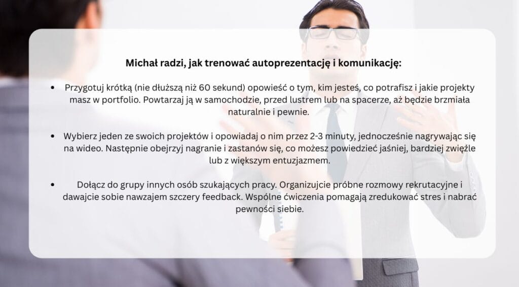 “Zamiast wielu małych projektów, lepiej stworzyć dwa lub trzy rozbudowane, które rozwiązują realny problem” – radzi. “Każdy projekt musi mieć demo i czytelny kod na GitHubie. To pokazuje, że kandydat potrafi nie tylko pisać kod, ale też budować całe, funkcjonalne aplikacje” – podkreśla.