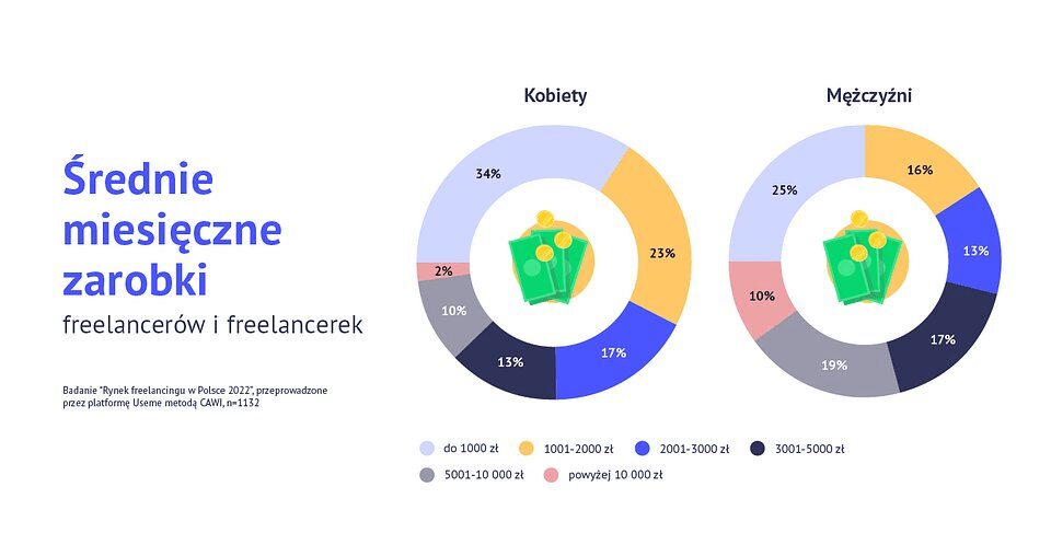 Grupa wolnych strzelców w Polsce jest coraz większa. Są to zarówno osoby, które traktują tę formę pracy jako główny sposób utrzymania, jak i dodatkowe źródło dochodów. Choć freelancing jest tak samo popularny wśród obu płci, to niestety równouprawnienie nie dotyczy zarobków. Największe dysproporcje widoczne są wśród copywriterów oraz webdeveloperów, najmniejsze natomiast w branży projektowania graficznego i usługach programistycznych.