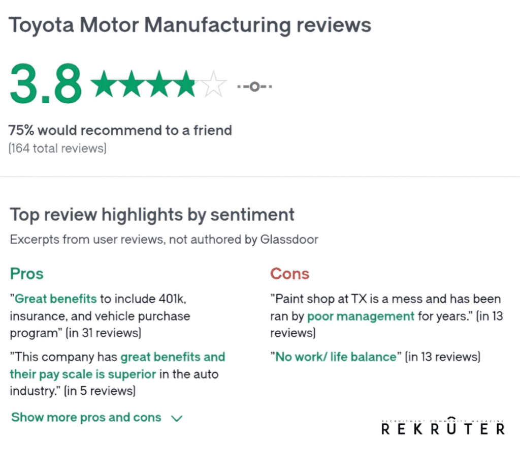 Toyota Motors Manufacturing Review. Source: Glassdoor