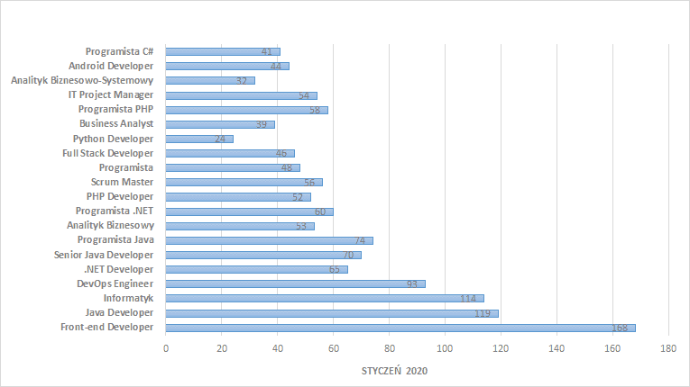 W oparciu o dane zebrane przez system rekrutacyjny Element przedstawiamy oferty pracy, które były najczęściej publikowane w branży IT w okresie od stycznia do marca 2020 roku.