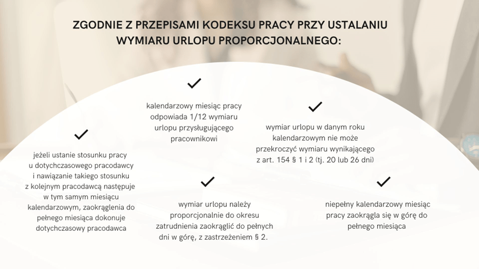 “W roku kalendarzowym, w którym ustaje stosunek pracy, pracownikowi przysługuje urlop proporcjonalny do okresu przepracowanego u danego pracodawcy.”