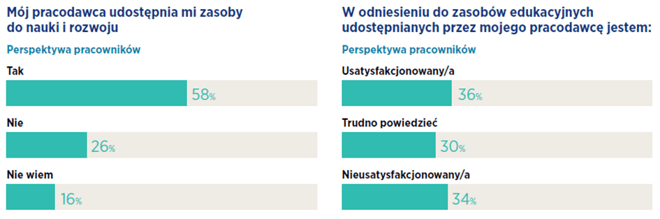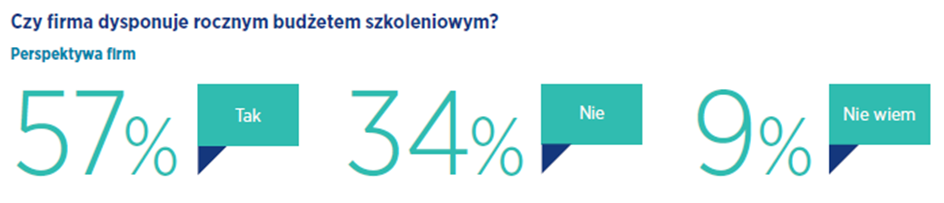 Pomimo otwartości specjalistów na podnoszenie kwalifikacji, pracodawcy deklarują zaniepokojenie niedoborem kompetencji w firmie. Jednocześnie, w tej grupie zaledwie co druga organizacja jest zdania, że jej aktualna oferta szkoleniowa może rozwiązać ten problem. Nie jest to zaskakujące, biorąc pod uwagę fakt, iż zaledwie 57 proc. ankietowanych firm dysponuje rocznym budżetem szkoleniowym.