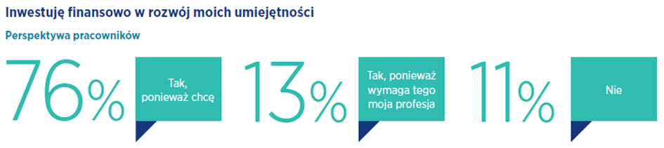 Możliwość rozwoju zawodowego niezmiennie od lat stanowi ważną kwestię dla pracowników. Jest to także jeden z elementów, który decyduje o dołączeniu do organizacji lub pozostaniu w niej. Jak wynika z badania, aż 98 proc. respondentów wykazuje się otwartością na zdobywanie nowych umiejętności.