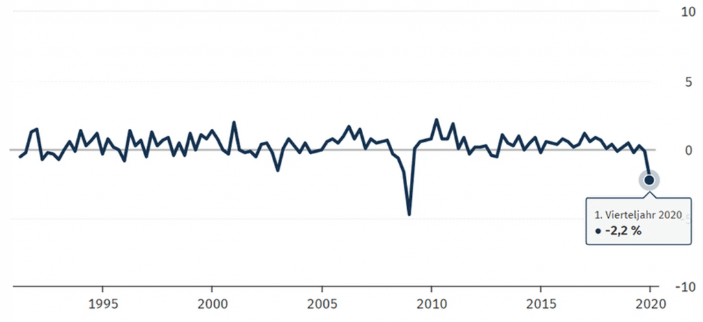 Najnowsze dane z Niemiec wskazują na najostrzejszy kwartalny spadek #PKB od czasu kryzysu finansowego w 2009 r. W I. kwartale 2020 #gospodarka Niemiec skurczyła się o 2,2% w porównaniu z poprzednim kwartałem: https://t.co/btgzLiJ6Ar #Niemcy #ifo #COVID pic.twitter.com/XOqlV0U2EP