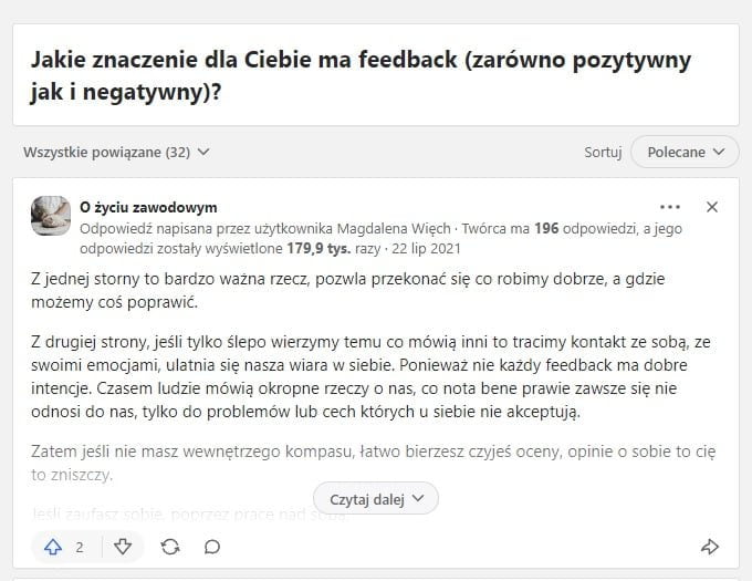 Wiele osób uważa, że informacja zwrotna umożliwia rozwój i poprawianie swoich wyników. Bez niego doskonalenie swoich umiejętności jest niezwykle trudne.
