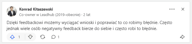 Już zatrudniony pracownik nie ma pojęcia o tym, że robi coś niepoprawnie lub, że mógłby poprawić swoją wydajność, dopóki nie otrzyma feedbacku.