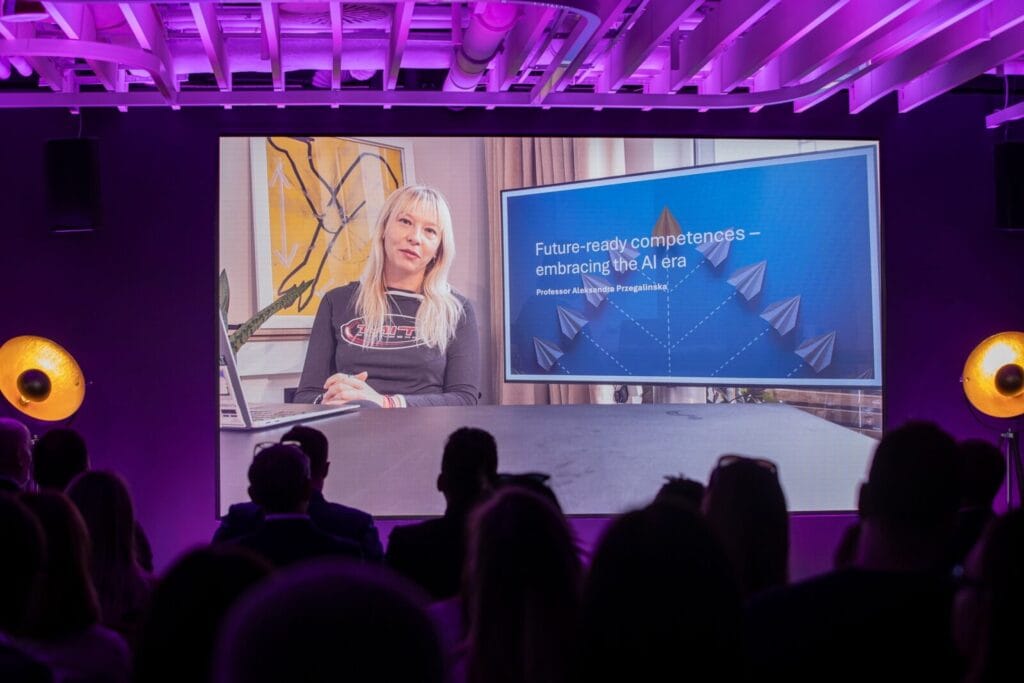Prof. Aleksandra Przegalińska, prorektorka ds. innowacji oraz AI w Akademii Leona Koźmińskiego i doradczyni naukowa Campus AI, zainaugurowała wydarzenie wystąpieniem, które skłaniało do refleksji nad tym, jak współpraca człowieka ze sztuczną inteligencją wpływa na podejmowanie decyzji. Zachęcała uczestników do testowania AI w różnych rolach: mentora, trenera, partnera sparingowego, krytyka, redaktora czy współpracownika – by odkryć najlepszy sposób na jej wykorzystanie.