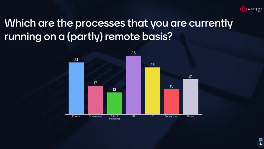 Następnie przedstawiła, jak pandemia zmieniła dynamikę pracy, zmuszając wiele osób do nagłego przejścia na pracę w formie zdalnej. Wspomniała, że zgodnie z Badaniem ASPIRE w marcu 2020 roku tylko 3% pracowników pracowało z biura.